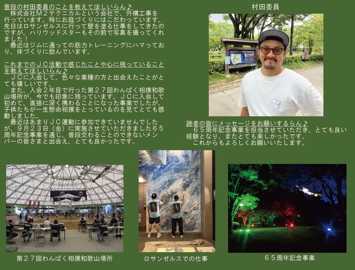 本年度は「わとらんインタビュー」と題し、和歌山青年会議所のメンバーにわとらんがお話を伺って、担当事業や青年会議所運動への意気込みを紹介します。