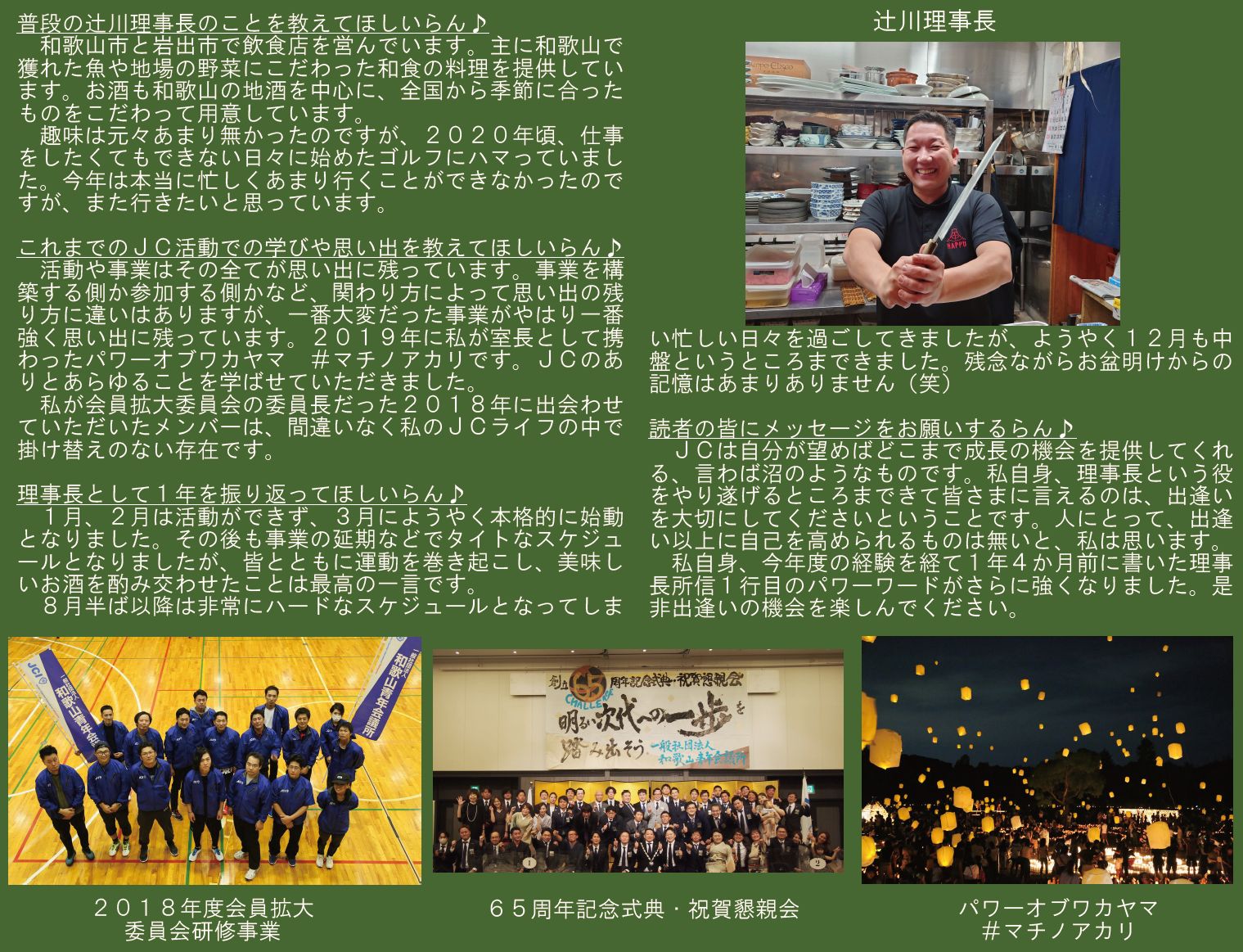 本年度は「わとらんインタビュー」と題し、和歌山青年会議所のメンバーにわとらんがお話を伺って、担当事業や青年会議所運動への意気込みを紹介します。今回は、理事長 辻川大器君にお話を伺います 。