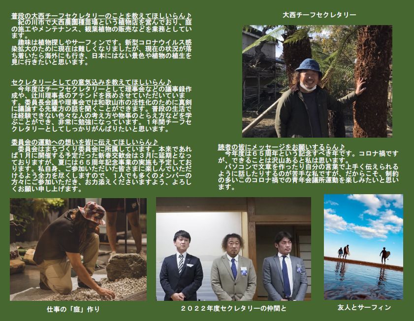 本年度は「わとらんインタビュー」と題し、和歌山青年会議所のメンバーにわとらんがお話を伺って、担当事業や青年会議所運動への意気込みを紹介します。今回は、 チーフセクレタリー 大西清悟君にお話を伺います 。