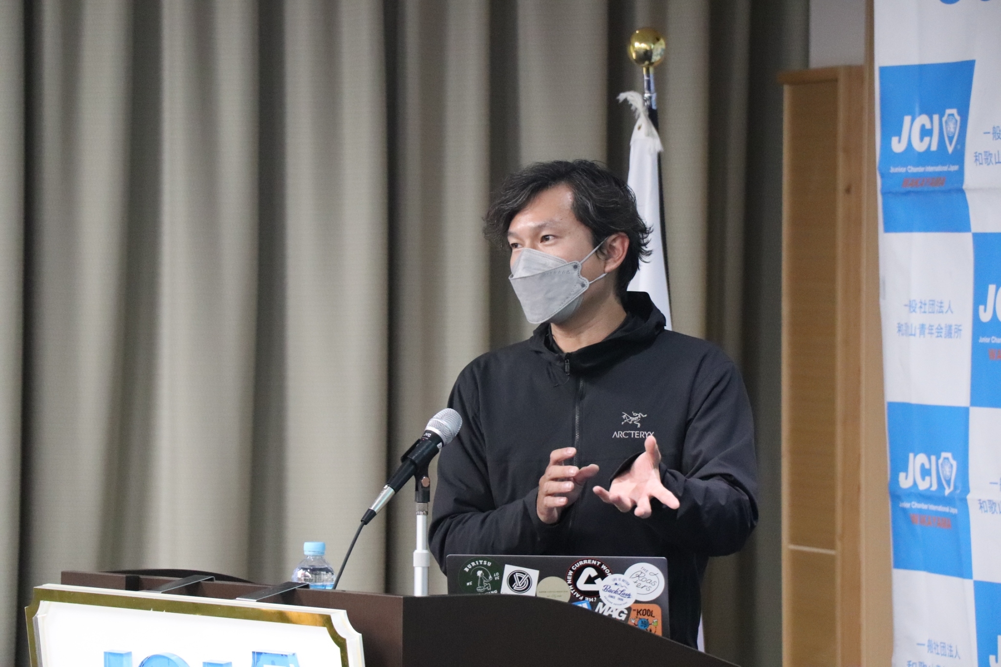 11月18日(金)和歌山城ホール大会議室にて、シニア・クラブとの合同例会を開催いたしました。例会では、ハピネスが生まれる4つの原則と題し、OUTDOOR SHOP Orangeのマネージャーである山本健介氏に講演いただきました。会社の理念や経営方針についてなど非常に興味深い内容をお話しいただき、地域から必要とされることや人との繋がりの大切さを学ぶことができました。また、例会後の懇親会では特別会員の皆さまと意見交換をし、学んだことへの理解を一層深めることができました。