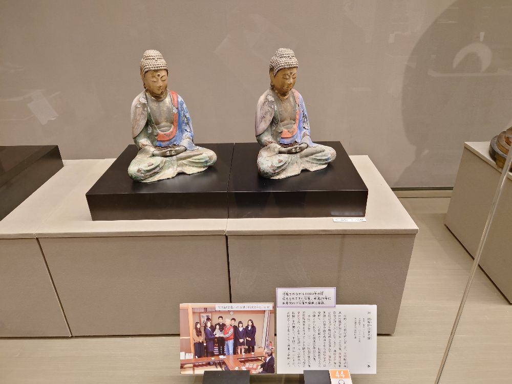 取材時は「仏像は地域とともに―みんなで守る文化財―」と題して和歌山に伝わる仏像についての特別展が行われており、地域に伝わる様々な仏像から、地域に根付いた信仰や人びとの生活が伝わる内容でした。また、地域で保管される仏像は盗難や損壊にも遭いやすいという問題があり、度々ニュースにもなっています。このような問題を打開するために、博物館では、和歌山工業高等学校や和歌山大学と共同で3Dプリンターによるレプリカを作成してお寺などに安置し、貴重な文化財である本物の仏像を博物館で預かって保存する、といった活動が紹介されていました。