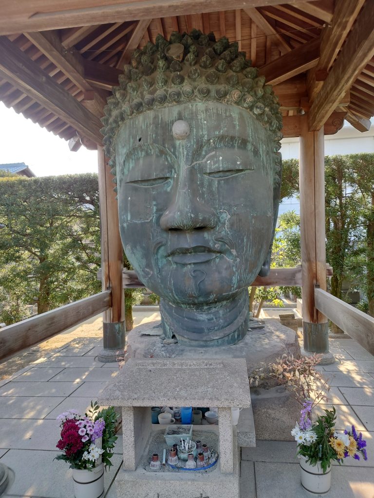 例えば、和歌山城から南に下ると「寺町通り」という道路がありますが、これは江戸時代に点在していた寺院をこの付近に集めて移転させたことがその由来となっています。寺町通りには現在も多くの寺院がありますが、その中に「無量光寺」があります。この、和歌山市保健所の向かいにある無量光寺には、頭だけの大きな仏像「首大仏様(おぼとけさま)」があります。今に伝わるものは、1840年ころ、鎌倉の大仏さまを目標にまずはお首だけを、ということでつくられたものです。