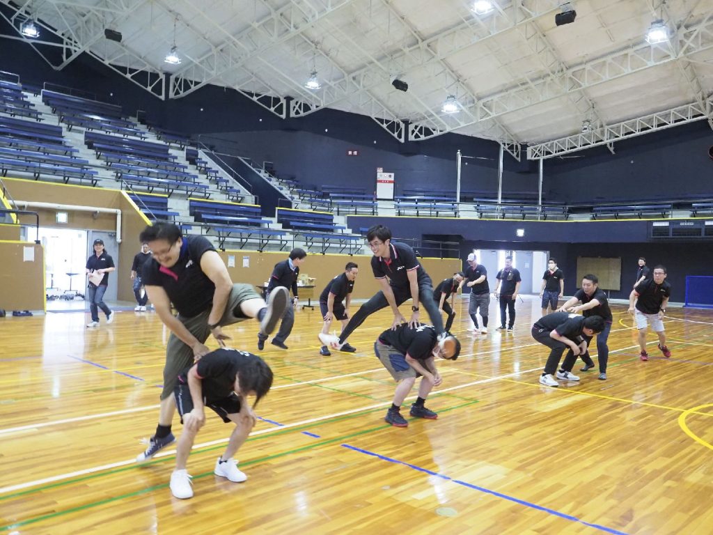 新型コロナウイルス感染症の蔓延により自宅での生活が余儀なくされる中、健康を意識し、体を動かしていただき、ストレスの解消や健康生活を取り戻すため、メンバーを4つの組に分けて、馬跳びリレー、綱引き、大縄跳び、しっぽ取りゲーム、借り物リレーの5種目の競技を行いました。