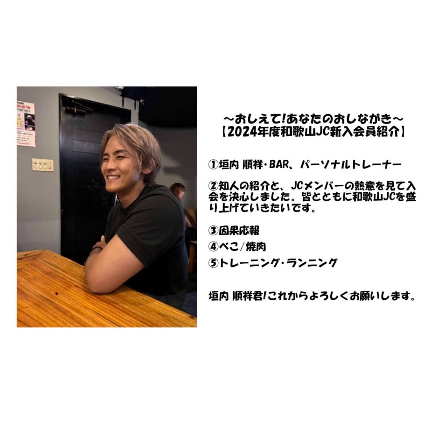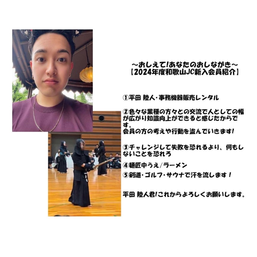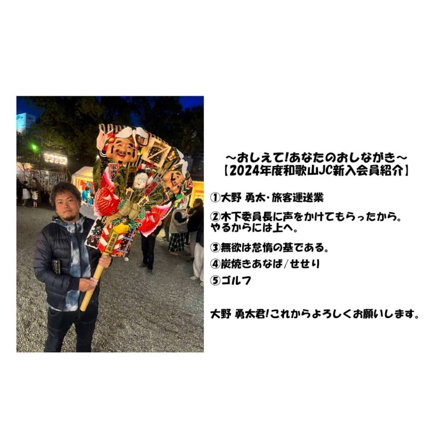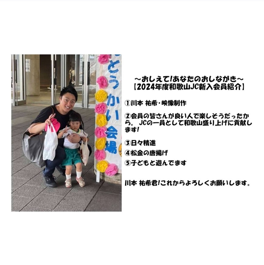 2024年度も和歌山JCには、いろんな新入会員が加わっています。この特集では、新入会員の皆さんにいくつかの質問を行い、どんなメンバーさんなのかをお伝えしていきます!