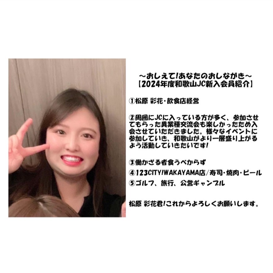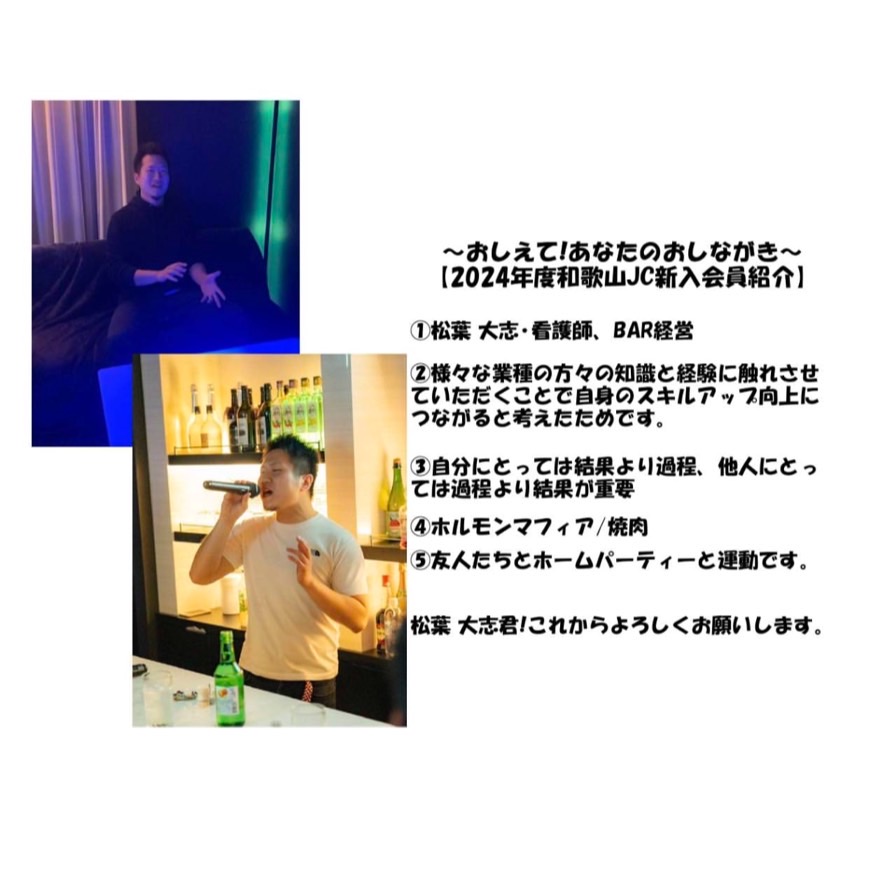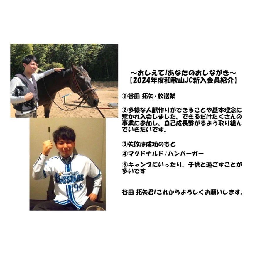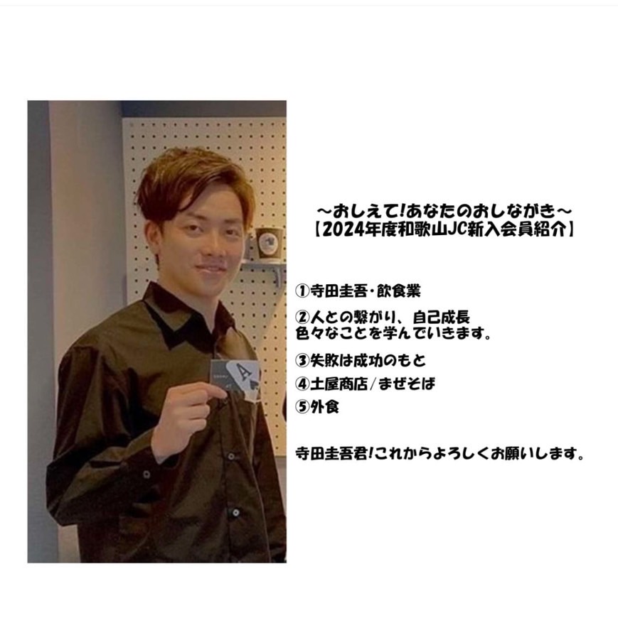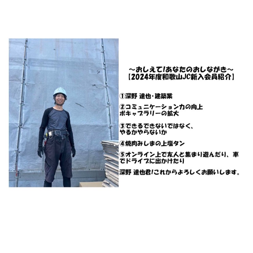2024年度も和歌山JCには、いろんな新入会員が加わっています。この特集では、新入会員の皆さんにいくつかの質問を行い、どんなメンバーさんなのかをお伝えしていきます!
