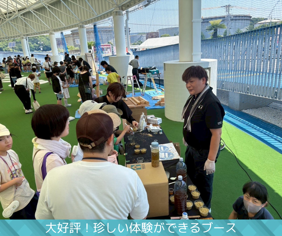 県内8つの青年会議所をはじめ、地元高校や企業、行政関係者など多くの方々にご協力いただき、地域の特産品や伝統産業を五感で体験できるブースが一堂に会しました。来場者は子どもから大人まで多世代にわたり、特に地域の食やものづくりに触れる体験型企画が好評を博しました。未来を担う世代に和歌山の魅力を伝えることを目的とした本事業は、多くの笑顔と学びに包まれ、地域の繋がりと希望を実感する一日となりました。