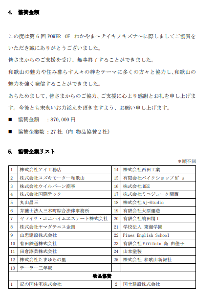 「第6回 POWER OF わかやま~チイキノキズナ~」報告書のご案内