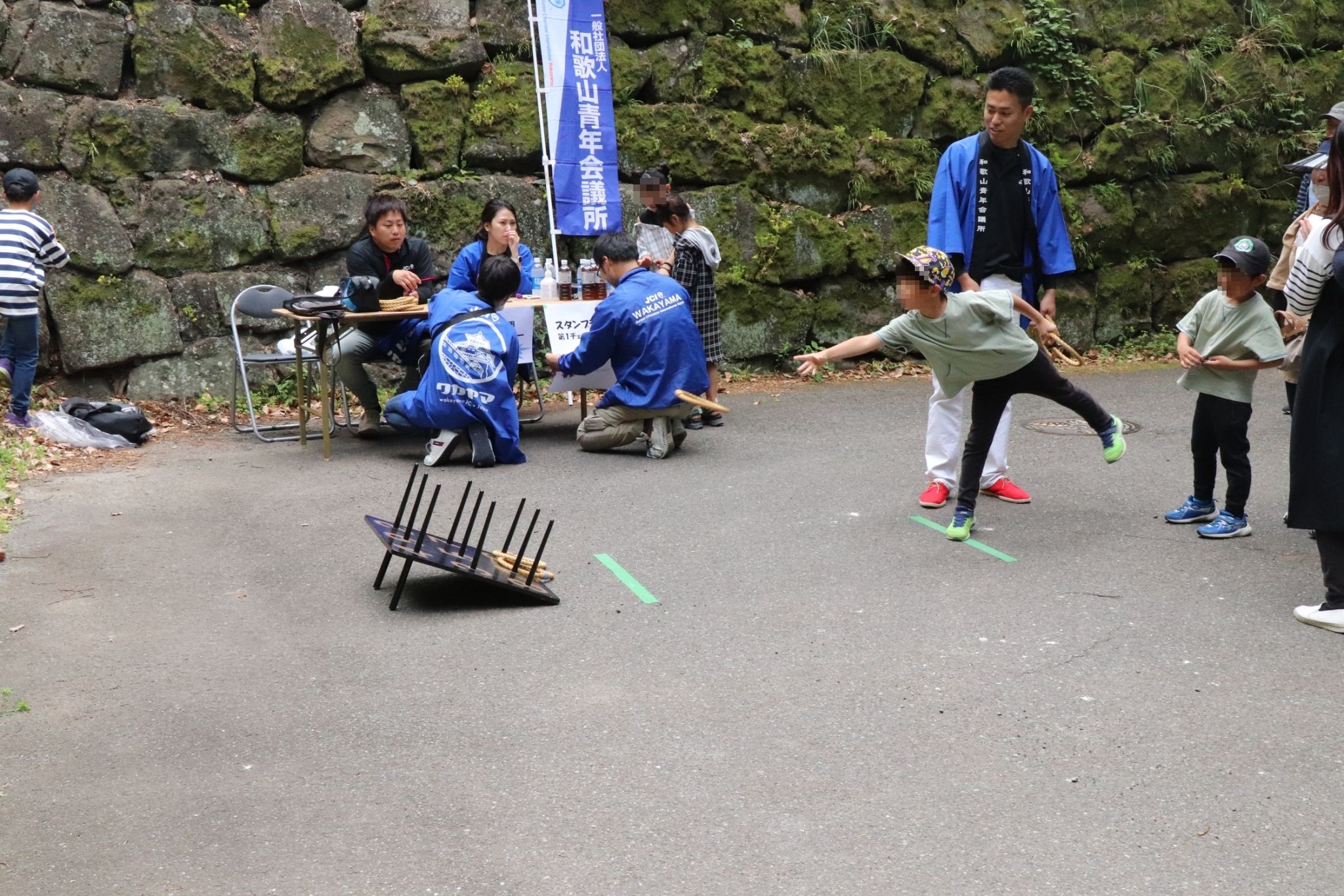 スタンプラリーでは参加者の皆さまに、輪投げ・忍じゃんけん・わとらんクイズをクリアしながら和歌山城を一周してもらうことで、楽しみながら和歌山青年会議所やその公式キャラクターであるわとらんについて知ってもらうことができました。