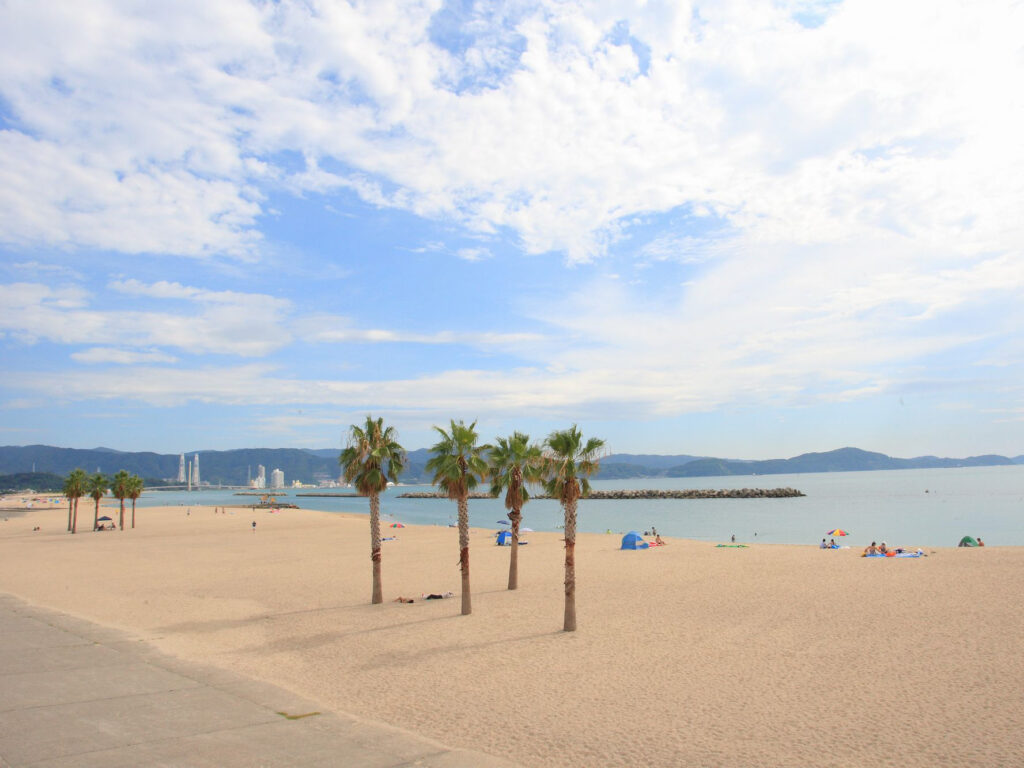 小舟潮:和歌山マリーナシティの近くにも浜の宮ビーチがあるんよ。遠浅の海水浴場で、ヤシの木が植えてあるリゾート気分が感じられる場所なんよ。潮干狩りもできて岩場の近くには小さなカニや魚などがいてるから、子供たちも海の生き物とふれあえる場所やで!和歌山市にはほかにも素敵なビーチがまだまだあるからこの夏に絶対行ってみてや!