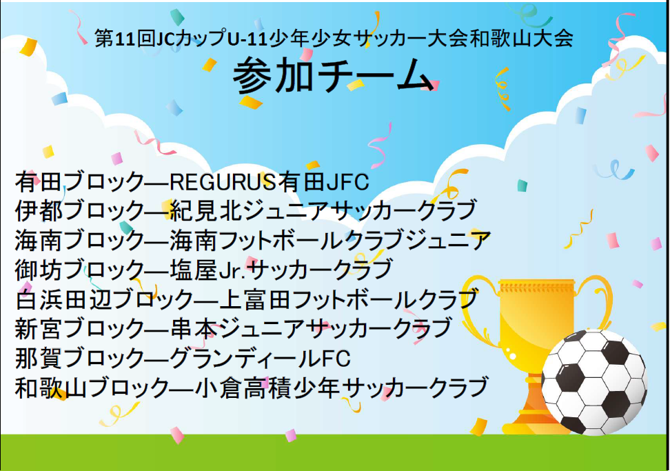 和歌山市からは小倉高積少年サッカークラブが出場されますので、皆さまの応援をよろしくお願いします。