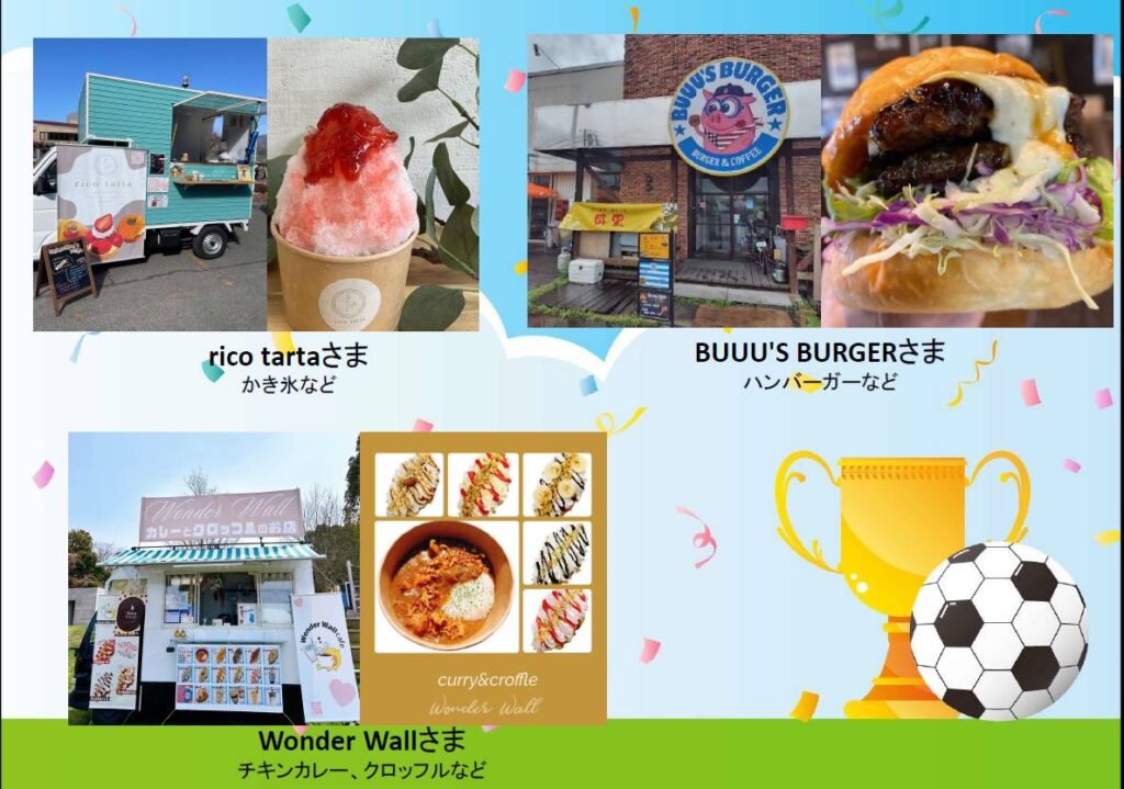 キッチンカーの出店もございます。食事をしながらサッカーを応援しましょう!