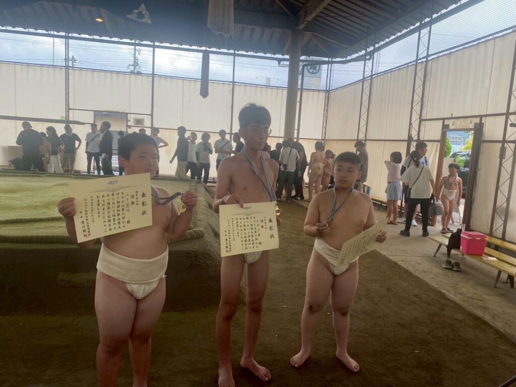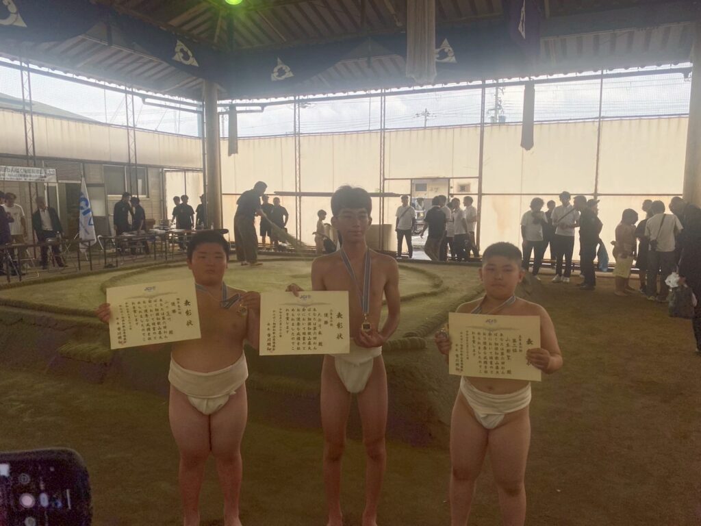 和歌山場所を代表して、4年生横綱の山下 蓮叶さん、5年生横綱の山本 都聖さん、6年生横綱の大西 斗麻さんが出場されました。