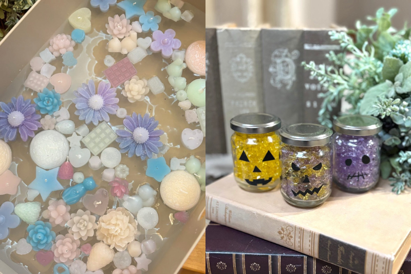Blanc purさんからは、キャンドルすくい & ハロウィンキラキラキャンドルワークショップ! お花やスイーツをモチーフにしたキャンドルを、金魚すくいのポイですくう「キャンドルすくい」。お子さまはもちろん、大人の方も夢中になれる楽しさです。さらに、ハロウィンカラーのキラキラジェルをボトルに詰め、顔のパーツを自由にデコレーション! 世界にひとつだけの個性豊かなハロウィンキャンドルを作っていただけます。