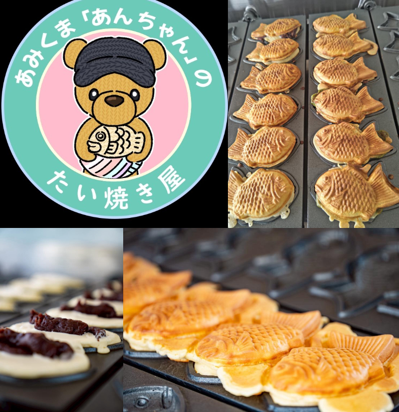 あみくま「あんちゃん」がマスコットのたい焼き屋さん。生地にも味があり、たくさんの卵でカリっと焼き上げたたい焼き。あんこ、クリームと是非食べ比べてみてください!