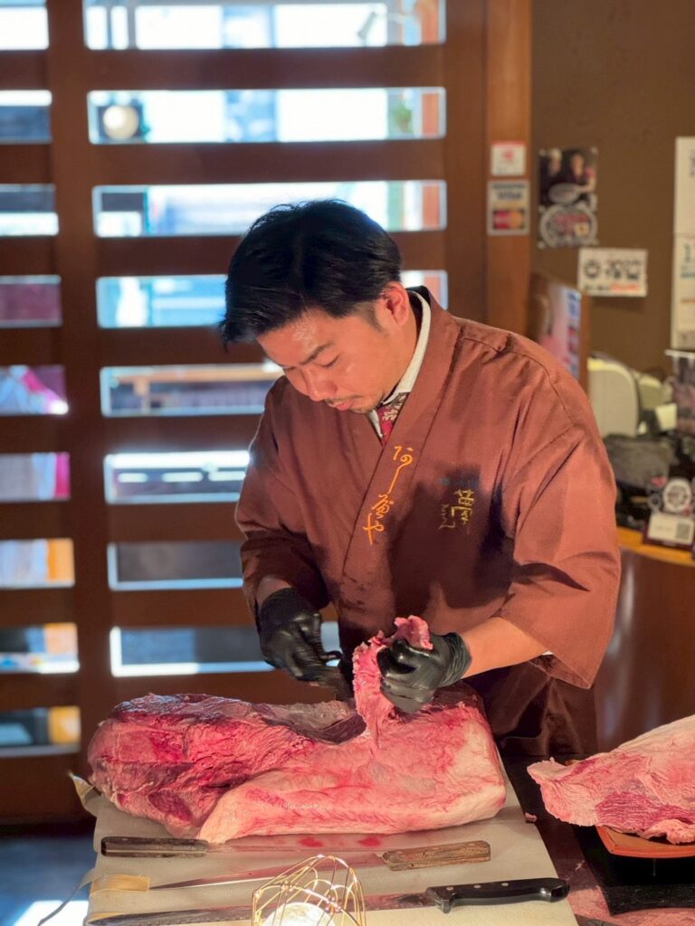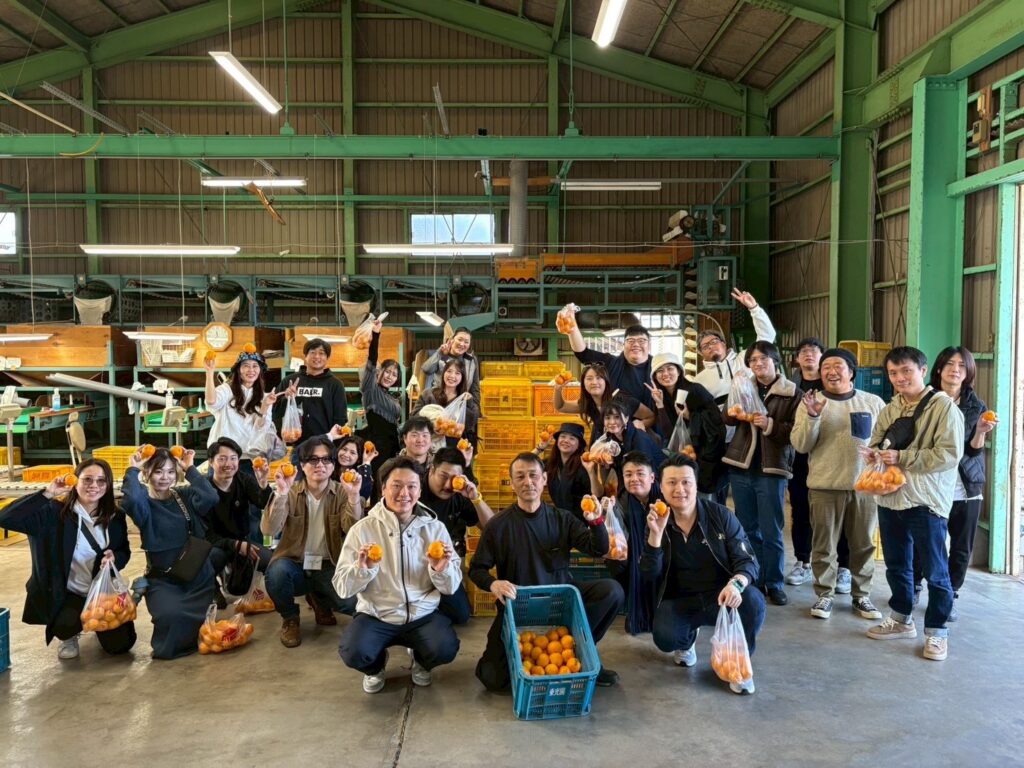 3日目は山東にある東光園様にお邪魔し、みかん狩り体験をさせていただき、非日常を味わっていただいたうえ、スロージューサーで作ったミカンジュースを堪能していただき、国際交流部会との昼食会では、熊野牛の解体ショーを楽しんでいただき、お茶会の見学をしていただきました。