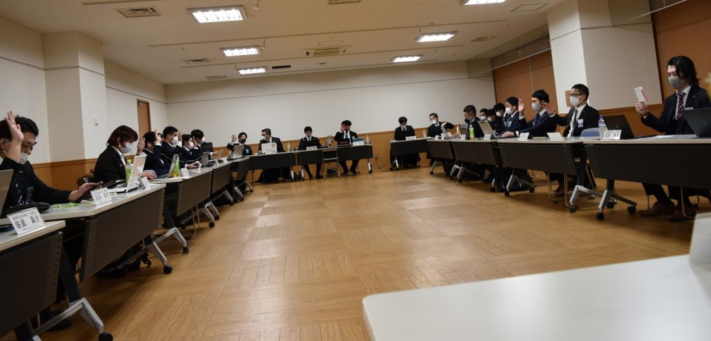 2月26日(金)一般社団法人和歌山青年会議所2021年度2月定時総会を行いました。新型コロナウイルス感染症予防のために新春交歓会と同様、役員のみ会場入りし、その他の会員にはZoomにて参加していただきました。