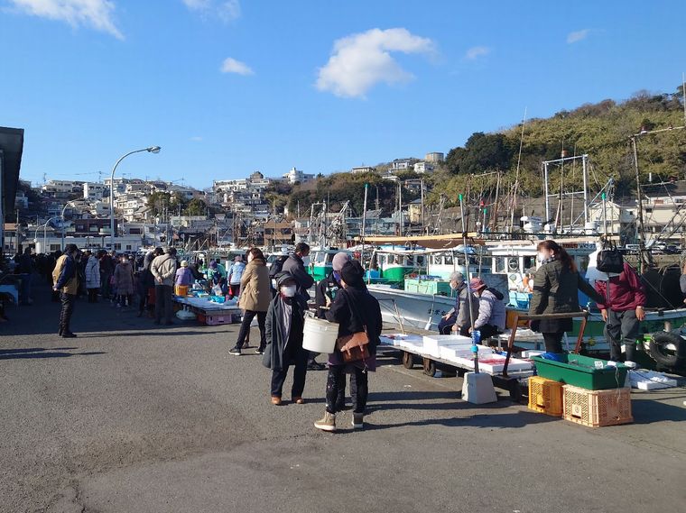 また、雑賀崎漁港では漁を終えて戻ってきた漁師さんから、漁船から下ろしたばかりの魚介類を直接買うことのできる「はた売り」が行われています。大体、10月から5月頃までは午後3時、5月から10月頃までは午後7時頃に開かれ、冬には足赤エビやアカシタ(舌平目)、夏にはハモやタイなどの〆たて(まだ生きていることもあります!)の旬の魚をとても安く購入することができます。また、見て回るだけでも漁港の活気ある雰囲気を味わうことができますので、一度立ち寄ってみてはいかがでしょうか。