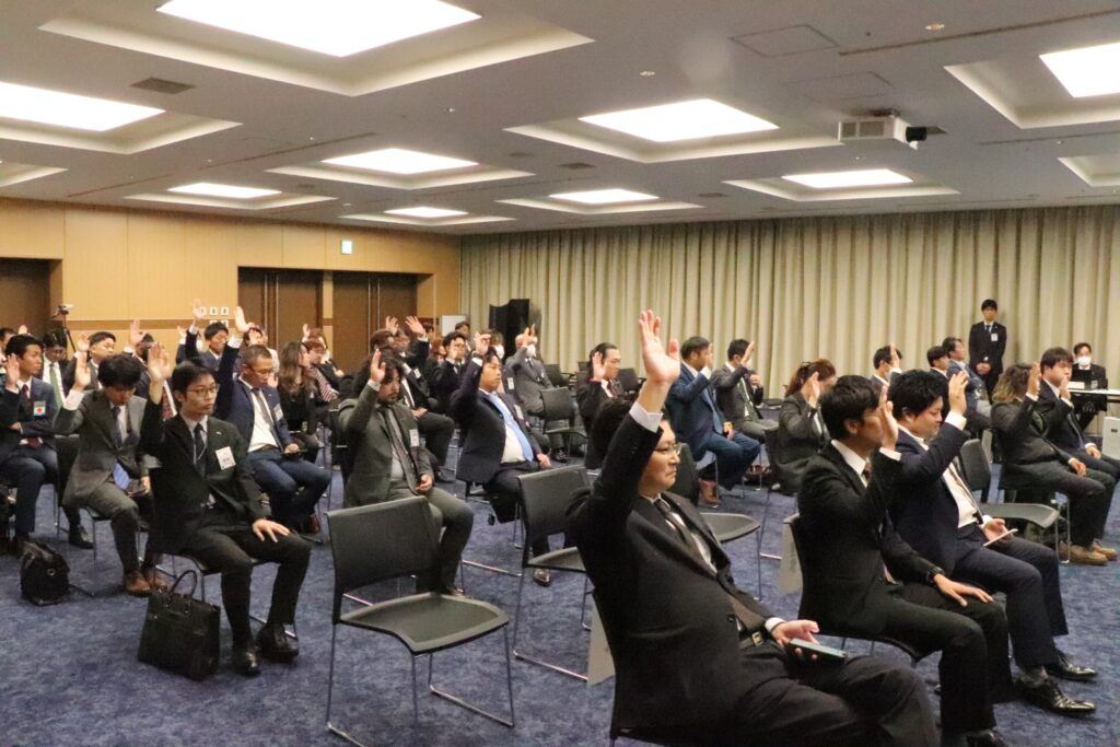 本総会では2023年補正予算(案)、2024年度一般社団法人和歌山青年会議所役員等予定者(案)に関する議件が全会一致で可決承認されました。2024年度理事長予定者の井川惇君より次年度に向けた想いが発表されメンバーの結束力を高めることができたと確信しております。
