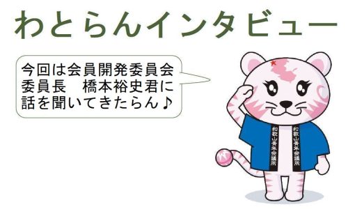 ~会員開発委員会 委員長 橋本裕史君~本年度は「わとらんインタビュー」と題し、和歌山青年会議所のメンバーにわと…